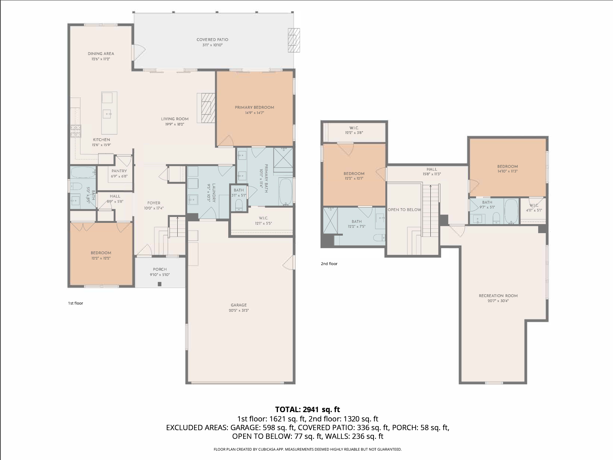 Four bedrooms, four full bathrooms, a bonus room, and an extra-deep four-car garage with custom wood garage doors. Total heated square footage is 2,945.