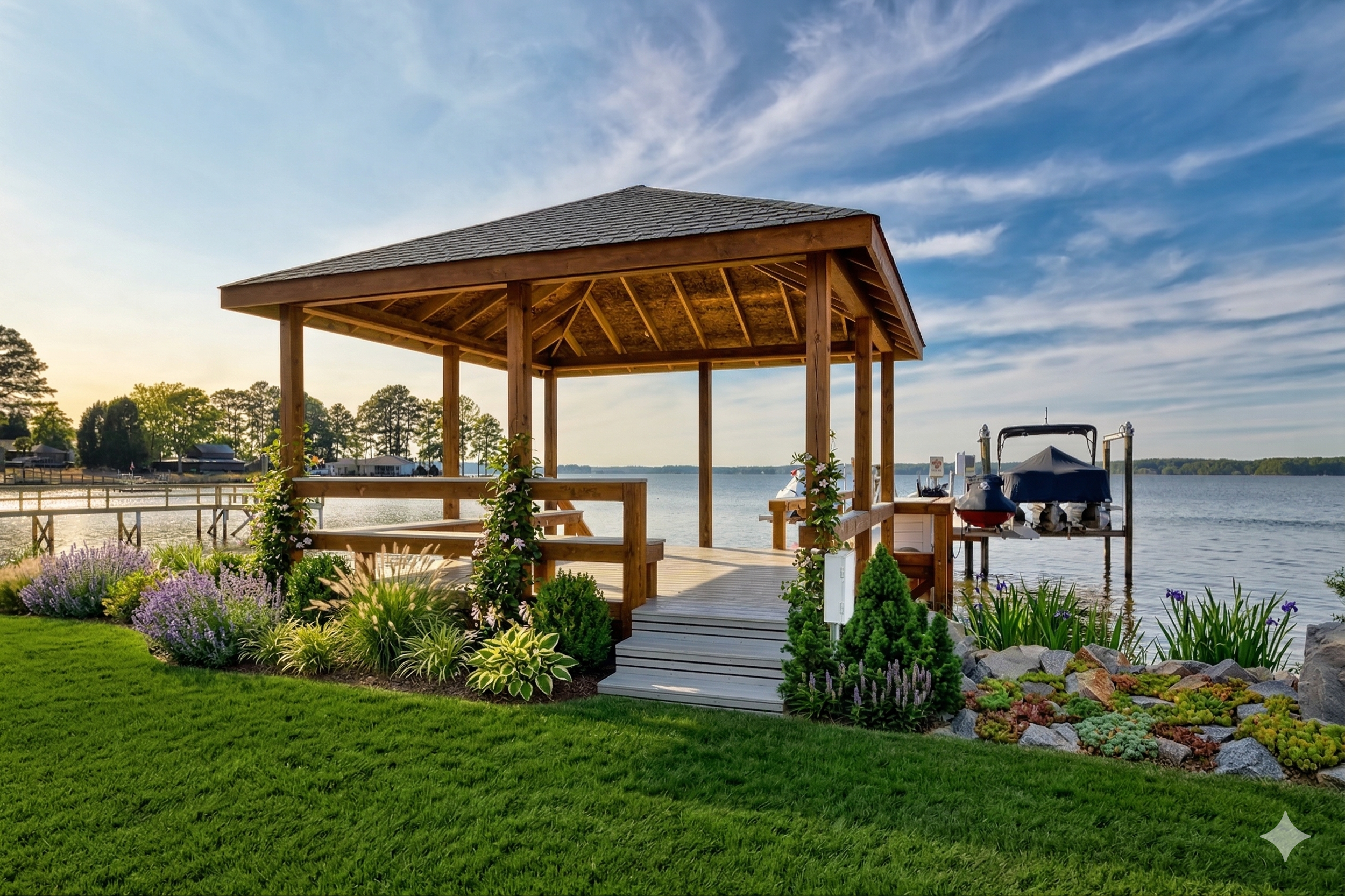The dock staging doesn’t need to be elaborate. Clean it thoroughly. Remove all personal storage, fishing equipment, and clutter. Add two or four attractive chairs and a small table. If you have dock lighting, make sure it works and turn it on for evening showings. If your boat lift has a clean, well-maintained boat on it, leave it — it reinforces the lifestyle. If the boat is old and weathered, remove it.